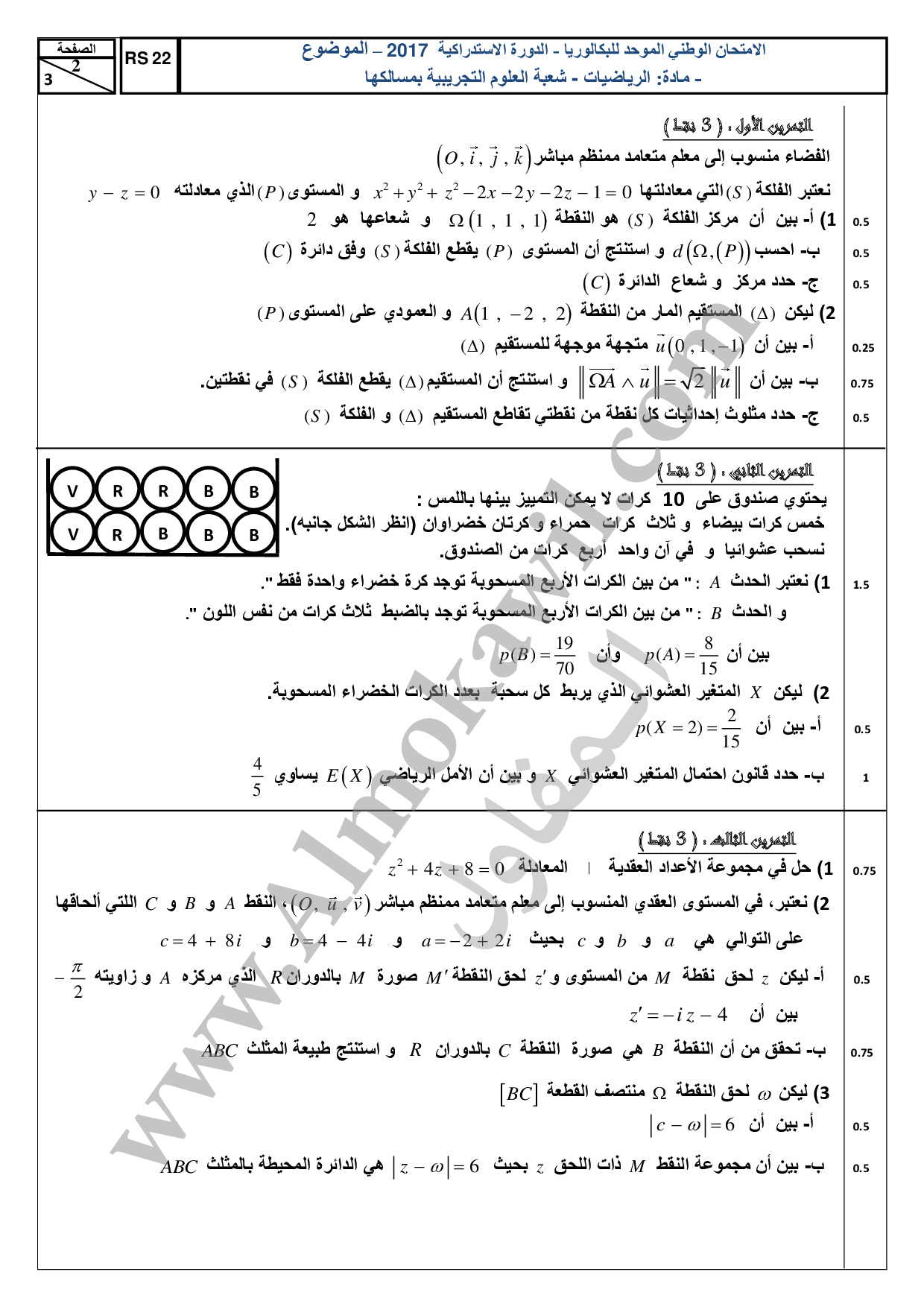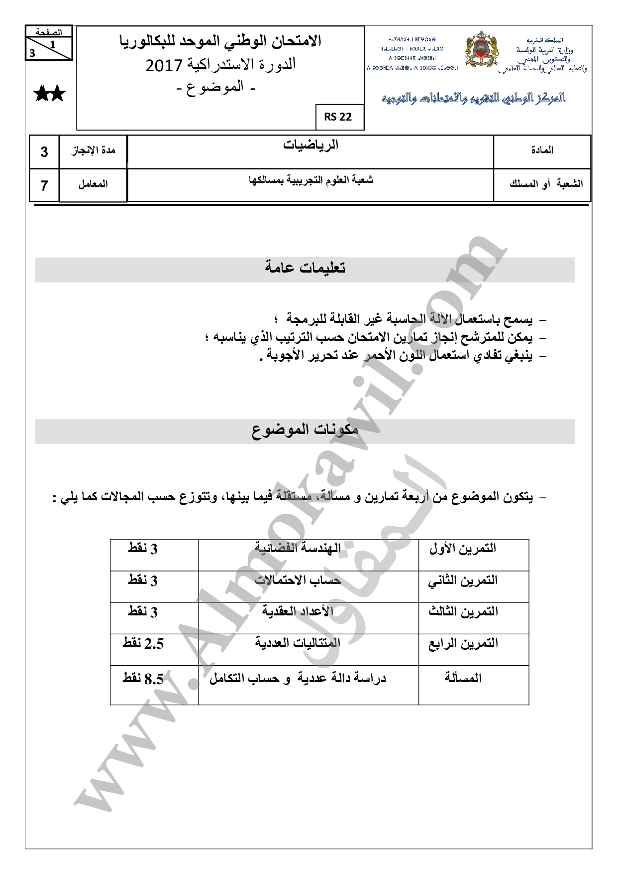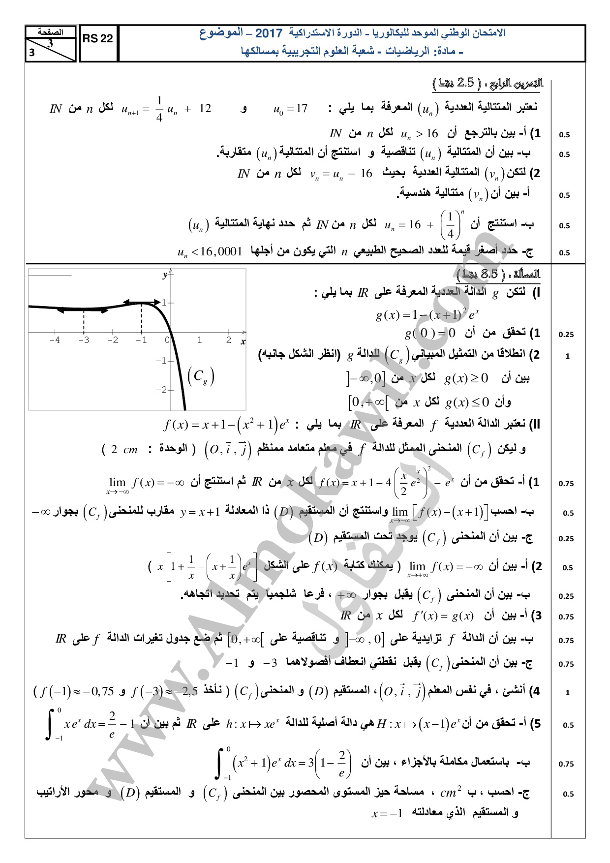 امتحان البكالوريا 2017 رياضيات الاستدراكية PDF