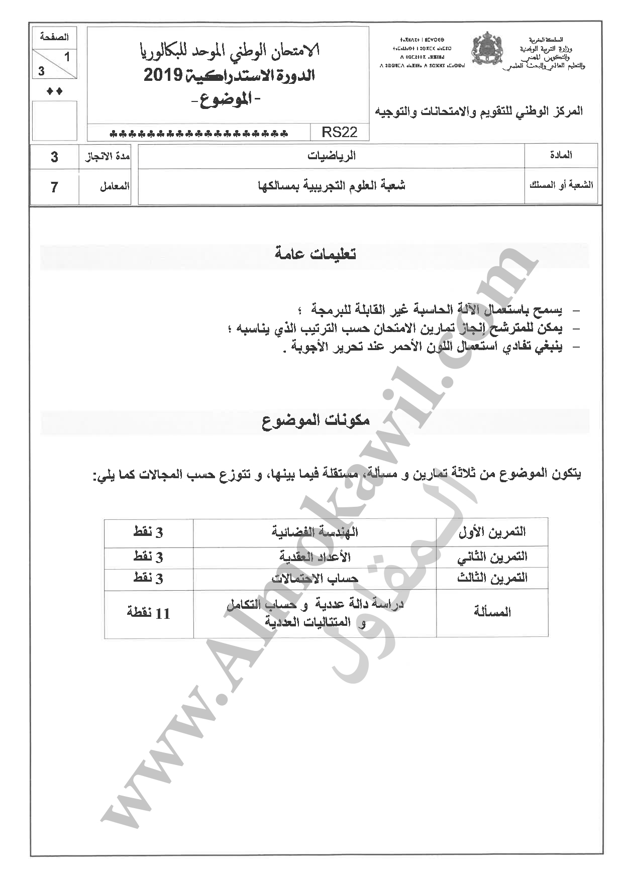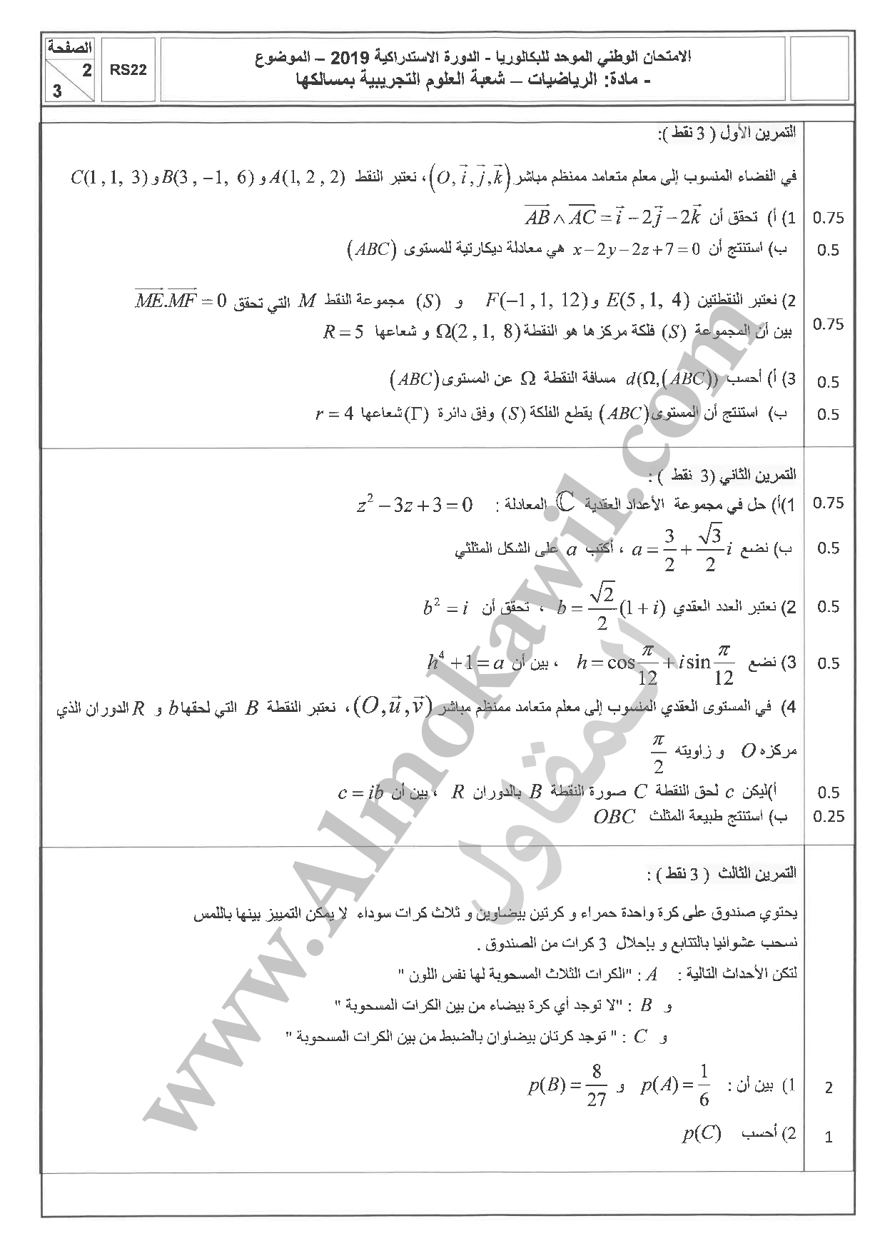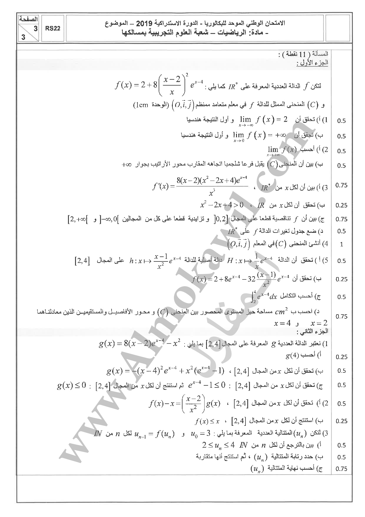 امتحان البكالوريا 2019 رياضيات الاستدراكية