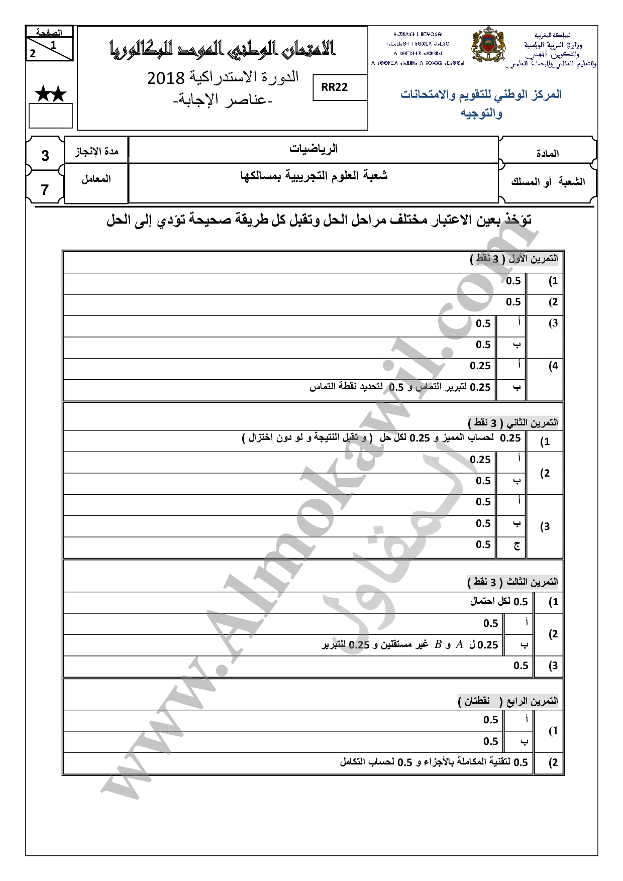 تصحيح امتحان البكالوريا 2018 رياضيات الاستدراكية PDF