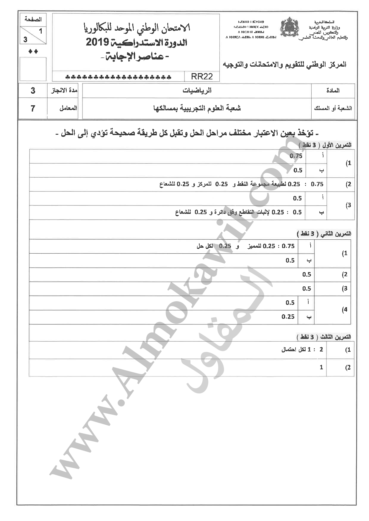 تصحيح امتحان البكالوريا 2019 رياضيات الاستدراكية