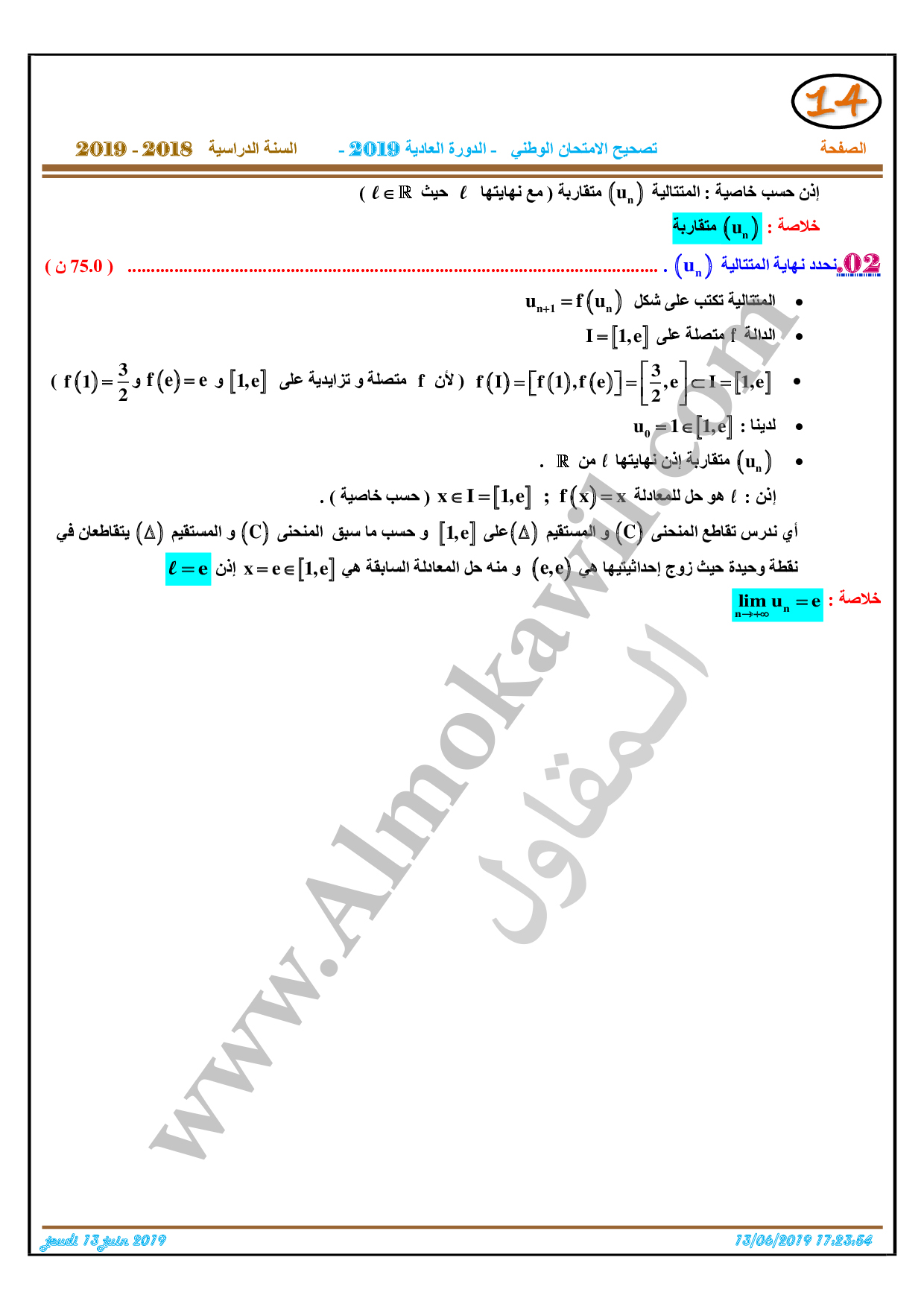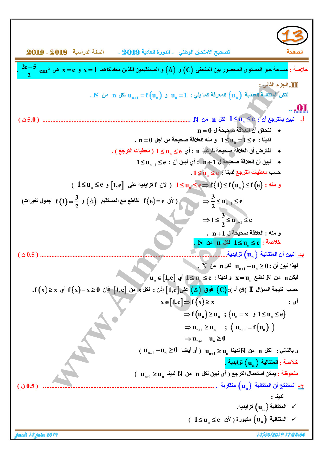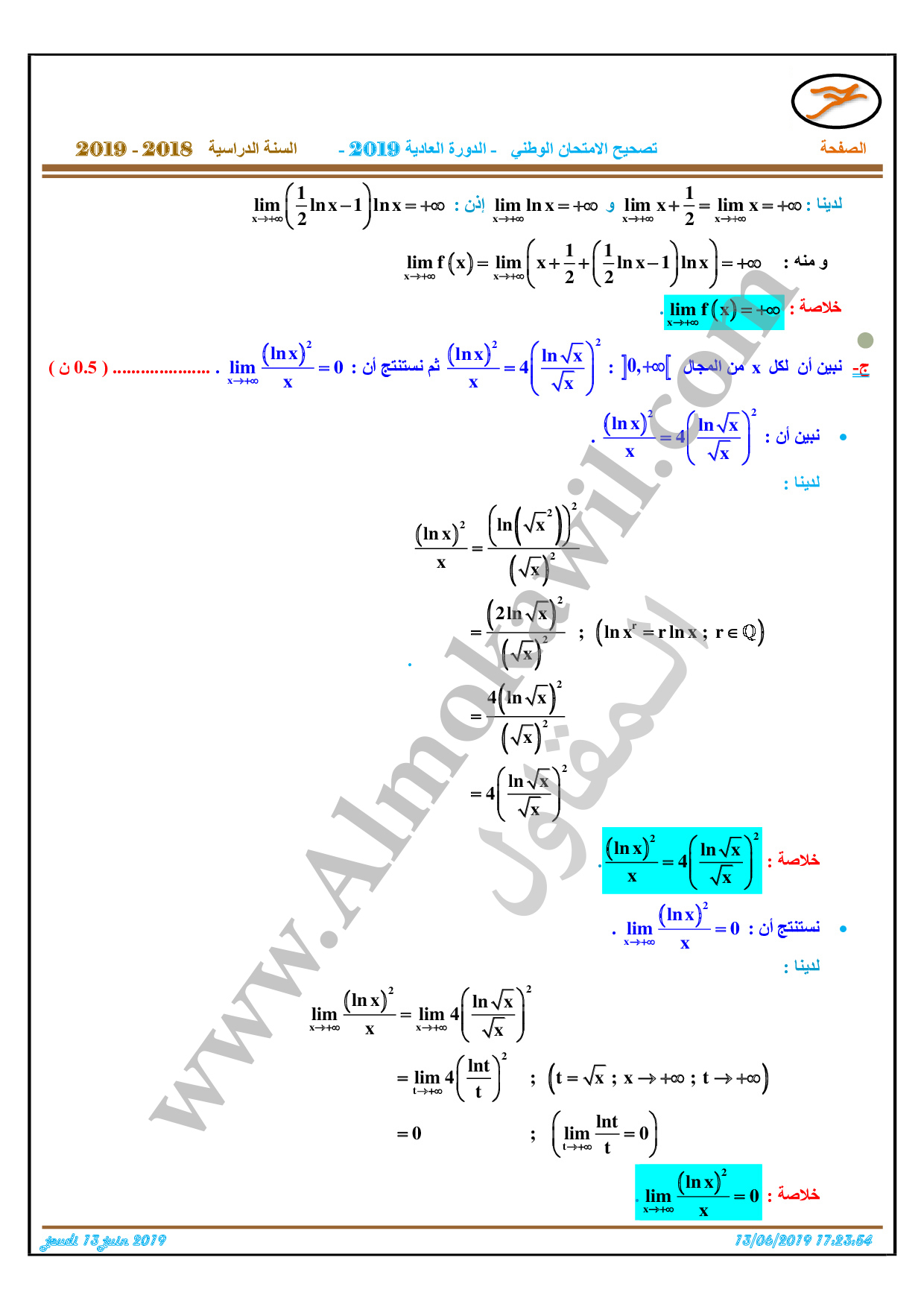 تصحيح امتحان البكالوريا 2019 رياضيات