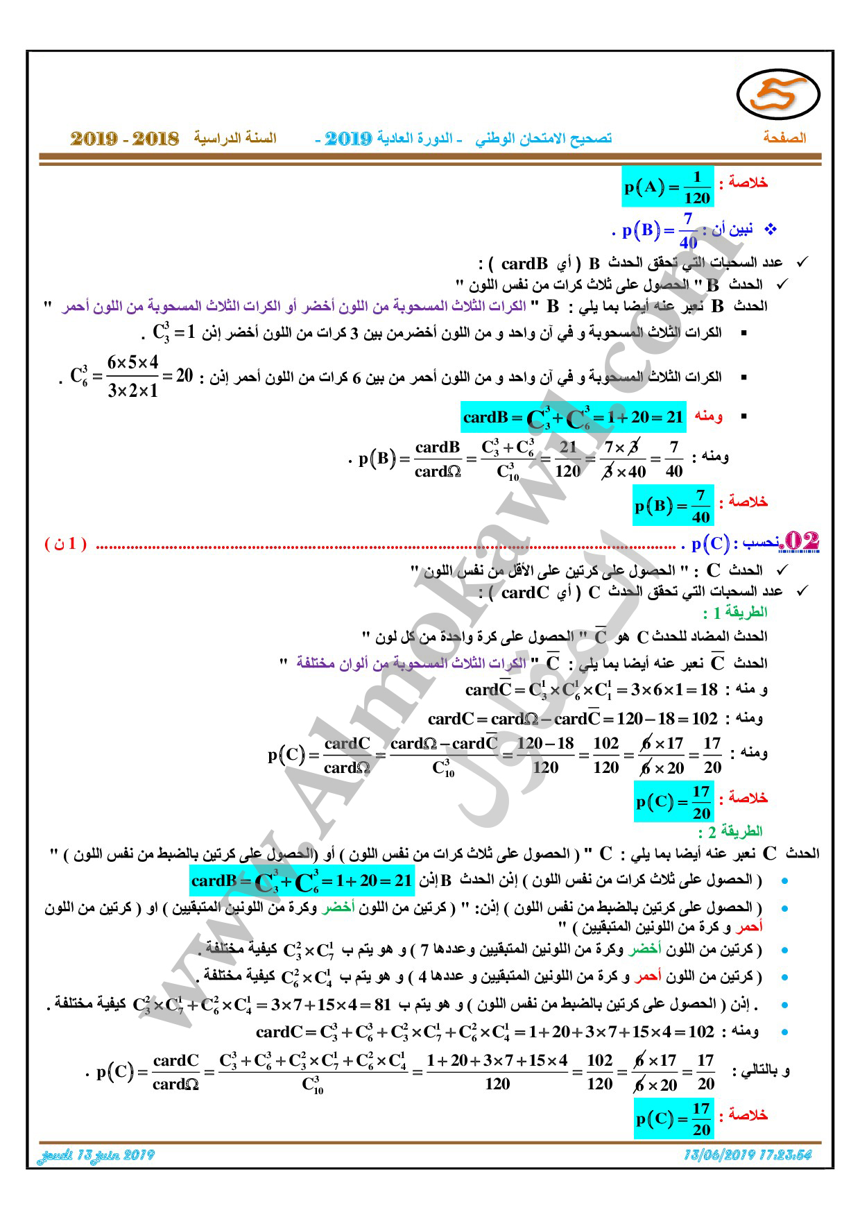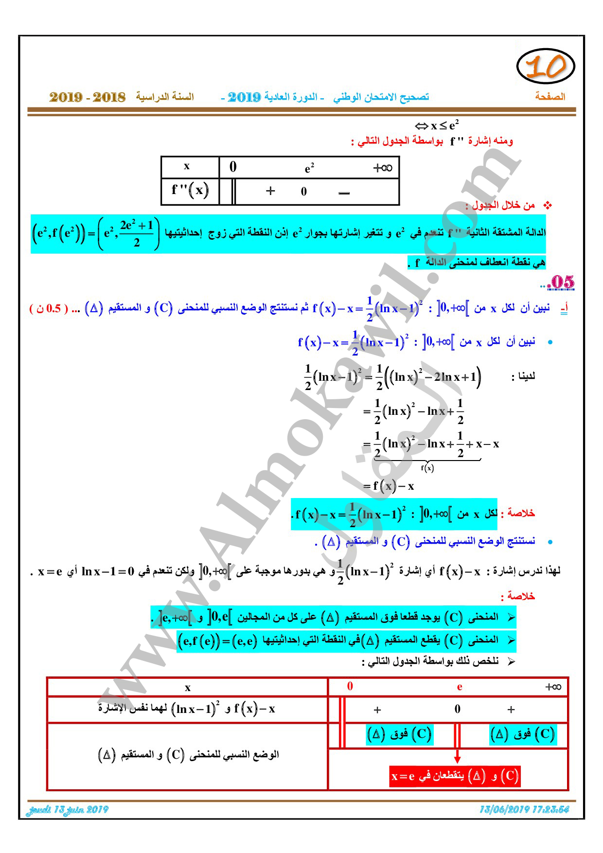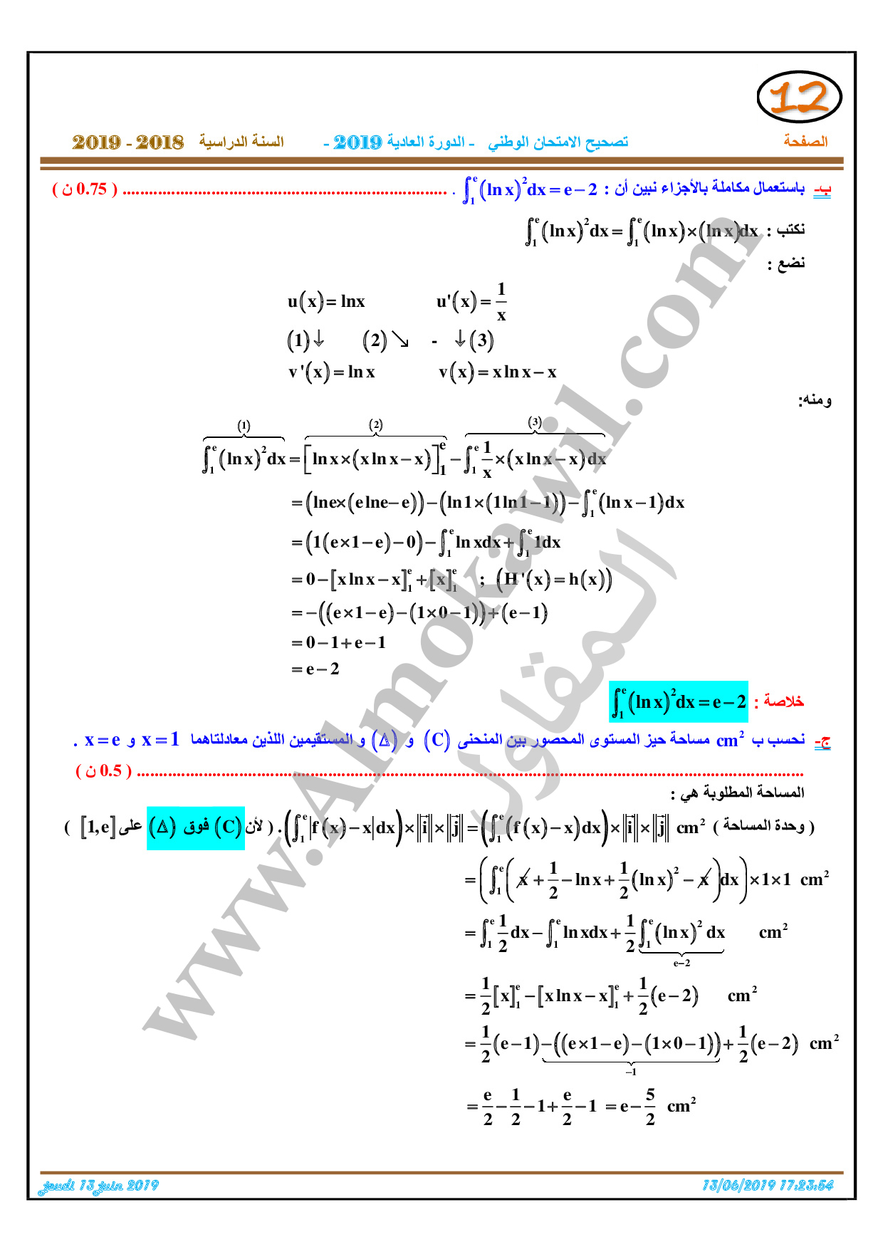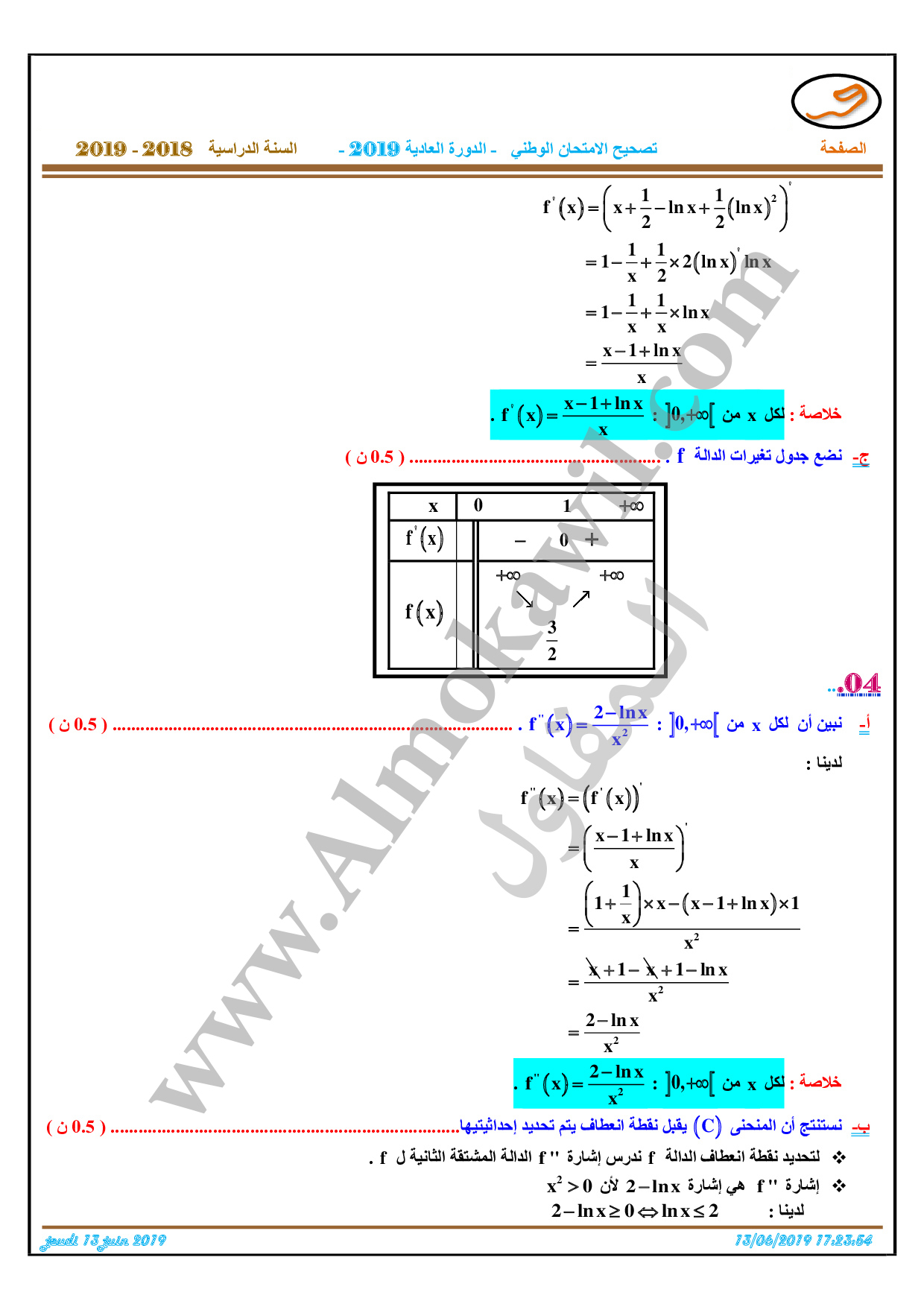 تصحيح امتحان البكالوريا 2019 رياضيات